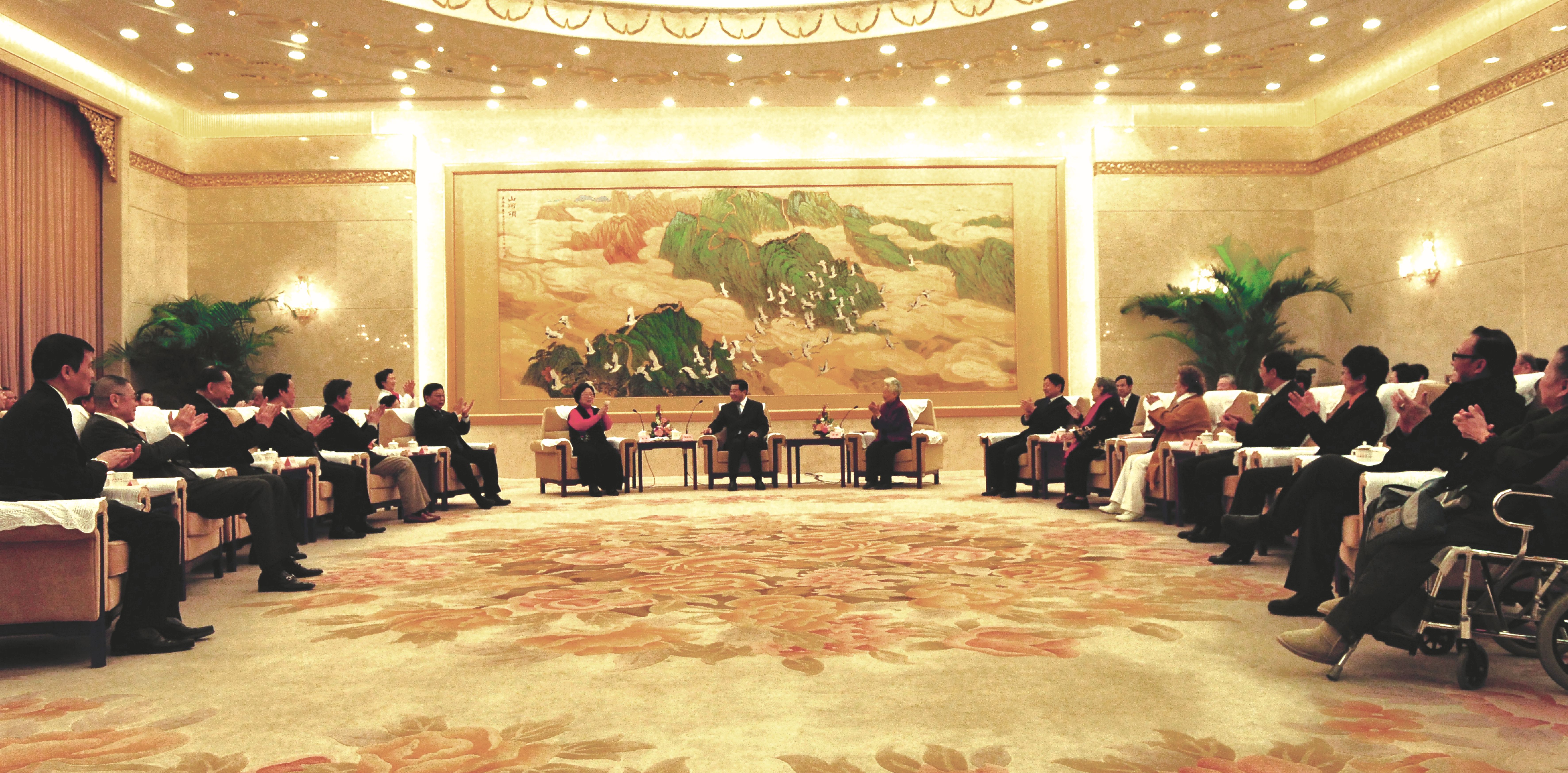 第十一届全国政协主席贾庆林和第十一届全国政协副主席郑万通等领导与众位艺术家亲切交谈