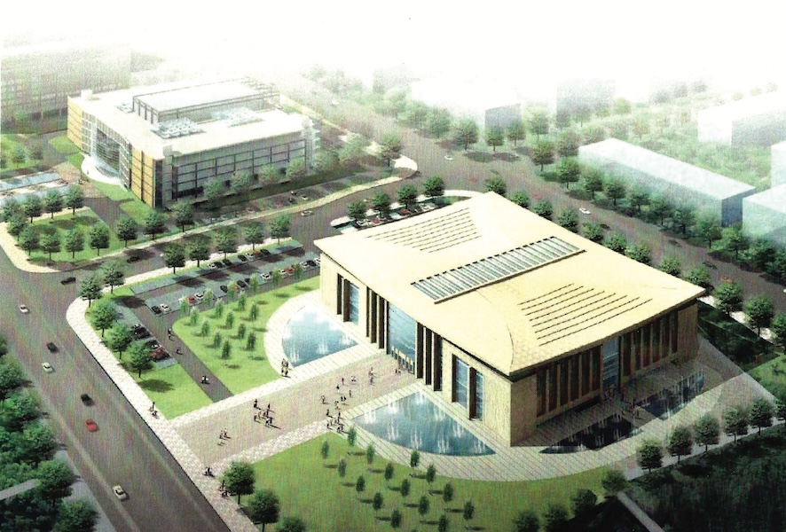 赵丹是一位伟大的表演艺术家,一生塑造了一系列的光辉艺术形象,与作家老含并称为“人民艺术家”。为了纪念他光辉的一生,弘扬祖国的优秀文化,在中国剧表演艺术家赵青女士发起下,由全国40余位人大代表及全国政协委员提案,在2006 年经报请全国政协、广电总局,决定在北京市建立"赵丹艺术中心”。位于北京市通州新城宋庄文化创意产业聚集区(CAD),占地500亩,建筑面积70余万平方米,造型独特,是一座集艺术博物馆、艺术家会馆、电影院、剧场、艺术产业园及赵丹表演艺术学院为一体的具有先进文化及世界顶级艺术人才荟萃的标志性文化设施。初步设想为“五大特色”,构架“四大平台”,确立“三大理念”,辅助“两大阶段”,实现“一个目标”。